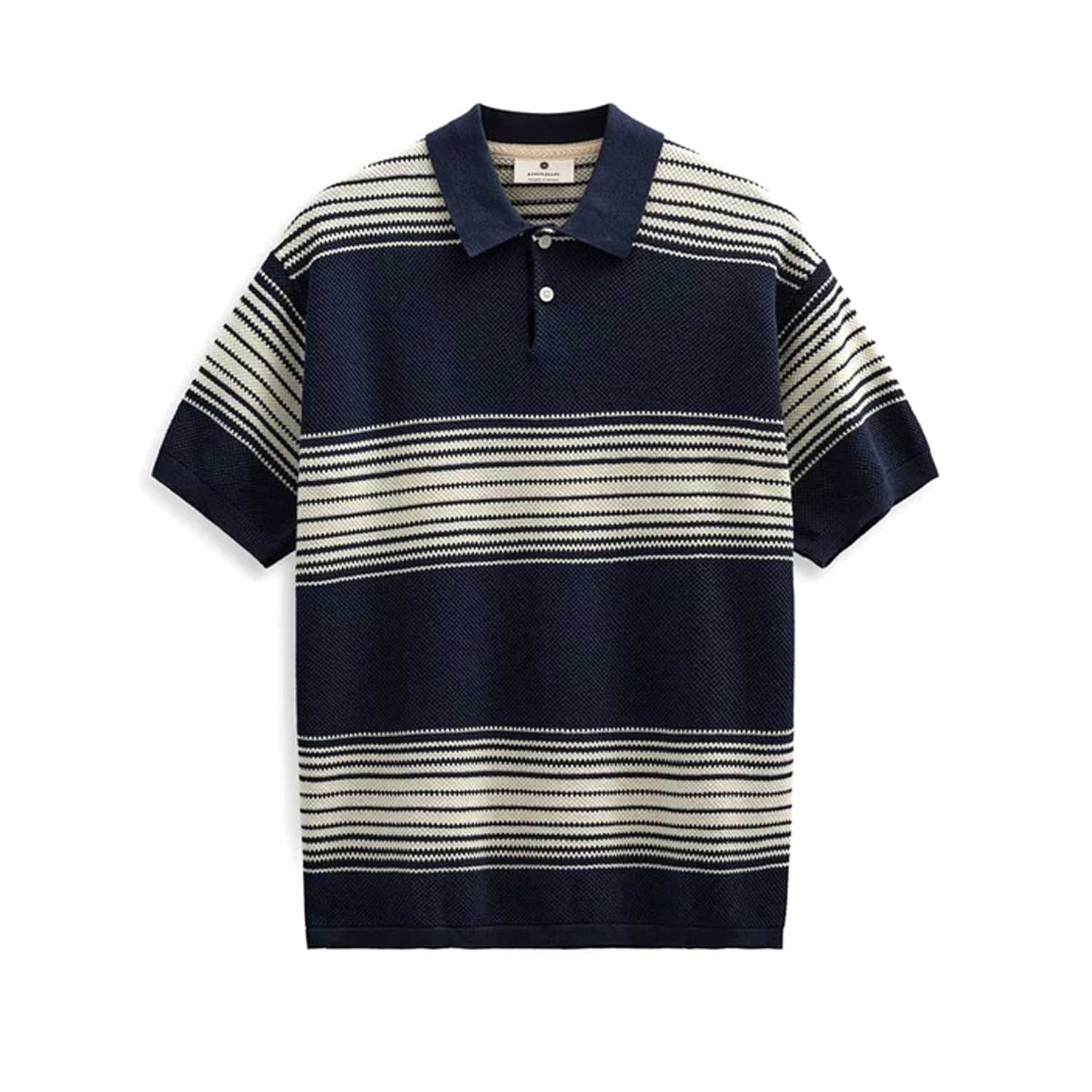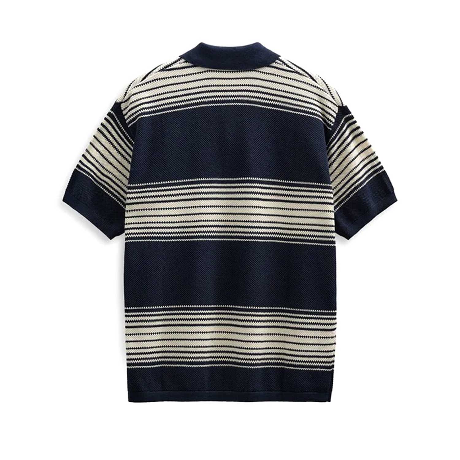 Una polo in maglia a manica corta dal look fresco e contemporaneo, perfetta per la stagione estiva. Realizzata in 100% cotone, si distingue per la texture morbida e traspirante che garantisce comfort durante tutta la giornata. Il design è caratterizzato da un motivo a righe che aggiunge dinamismo e un tocco moderno al capo, mantenendo un’estetica pulita e versatile.