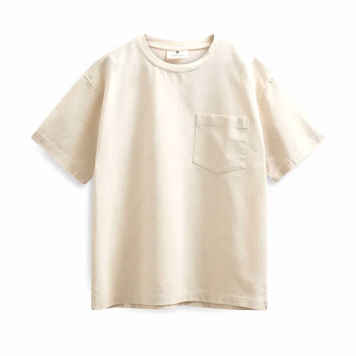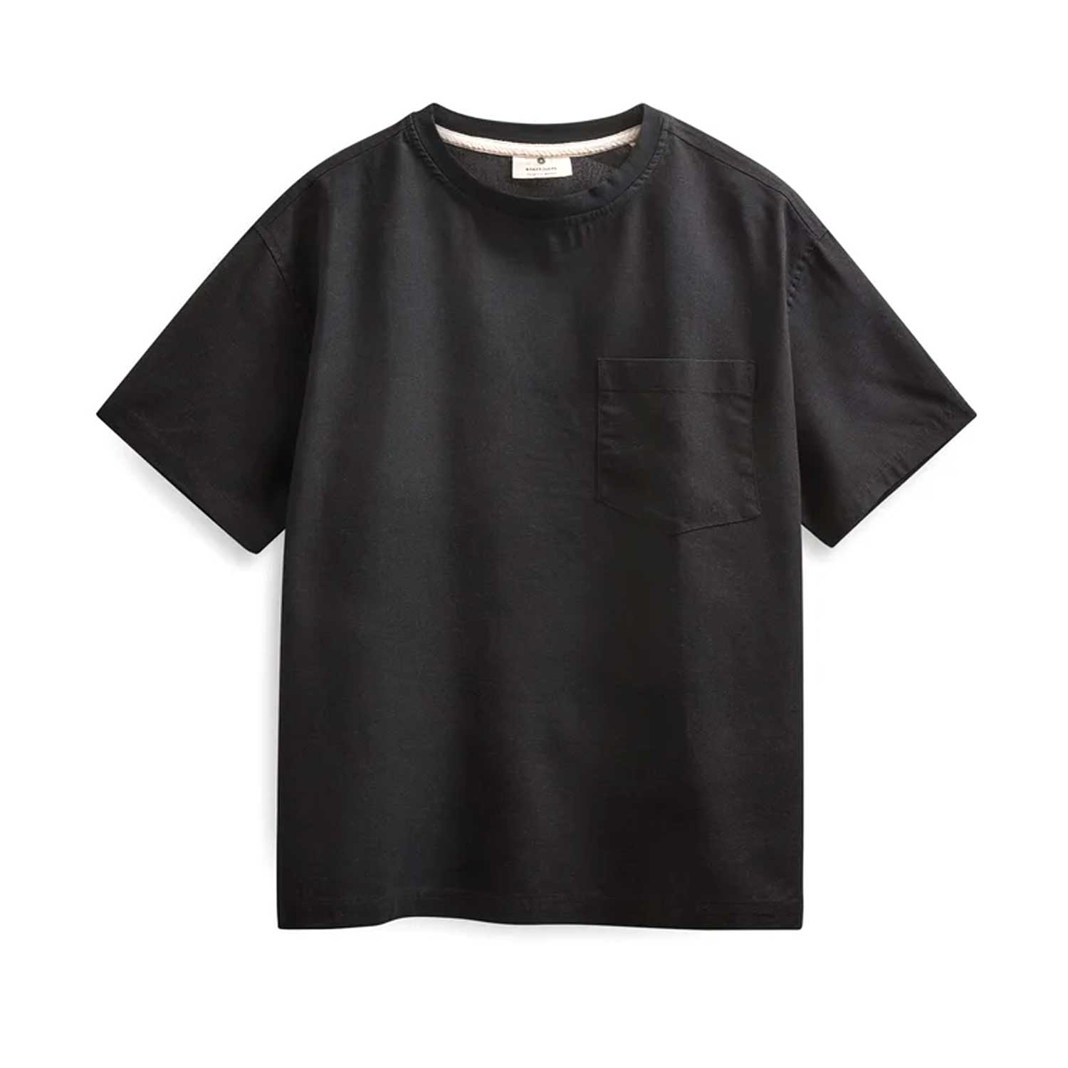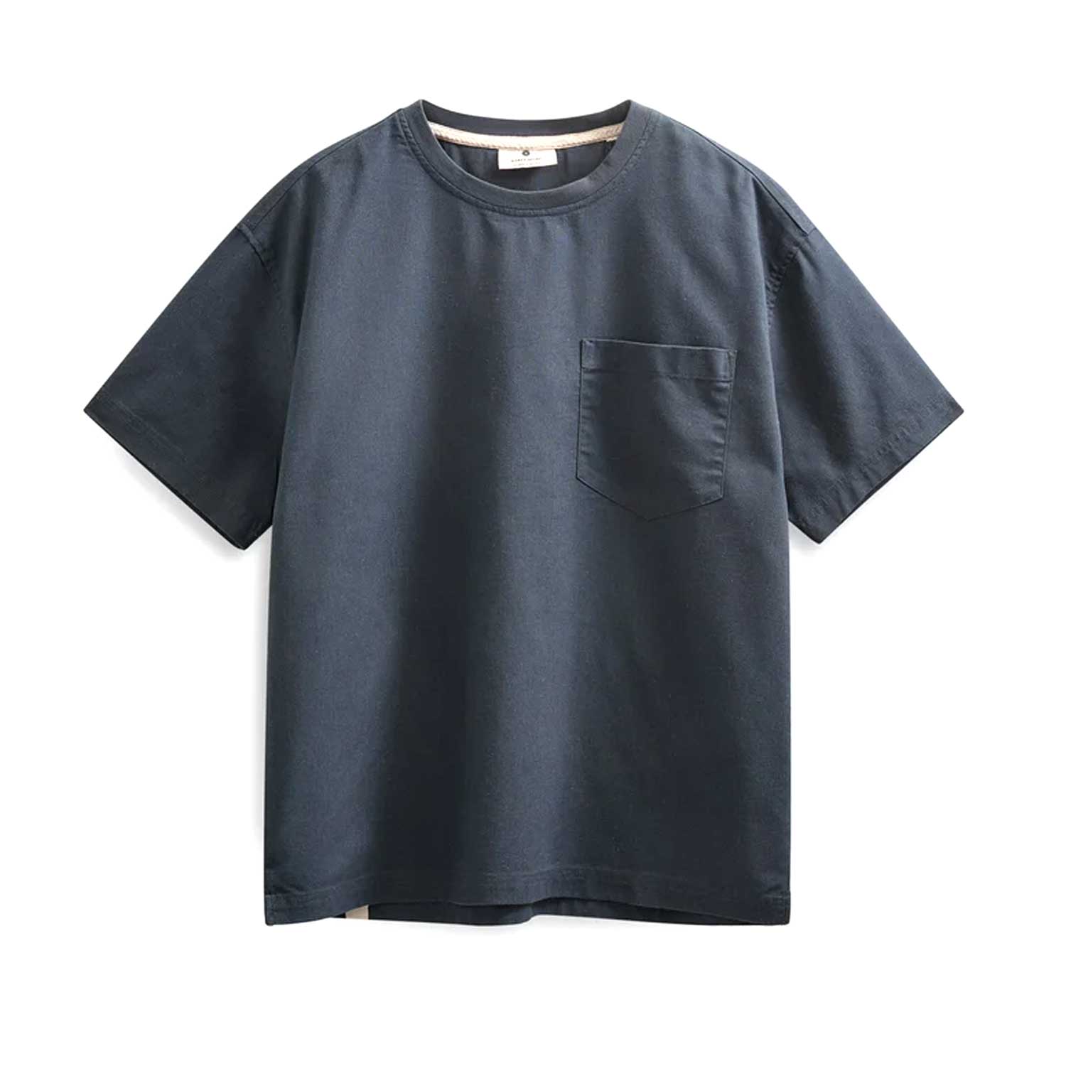 Una t-shirt a manica corta dal design essenziale, arricchita da un pratico taschino sul petto che aggiunge un tocco funzionale e moderno. Realizzata in un blend leggero e traspirante di cotone, viscosa e lino, garantisce freschezza e comfort anche nelle giornate più calde, mantenendo una vestibilità morbida e naturale.