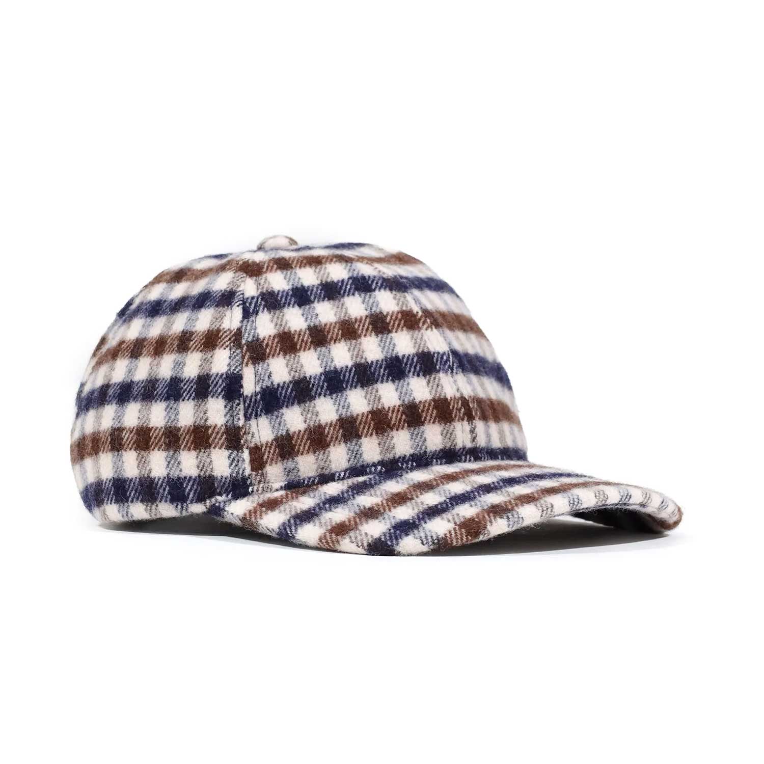 Questo berretto baseball è realizzato in tessuto 100% lana Merino e smacchinato con motivo Club Check, per un’estetica elegante e riconoscibile. Il trattamento con leggera resinatura a spray conferisce al capo una caratteristica idrorepellente, ideale per l’uso quotidiano. L’etichetta tessuta posizionata all’interno e la fibbia in metallo regolabile completano un accessorio funzionale e curato nei dettagli.