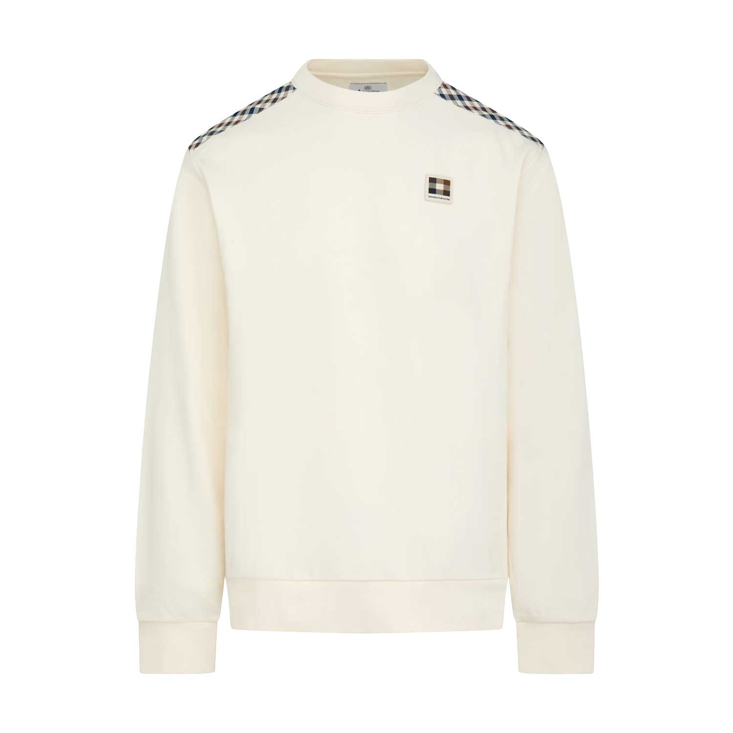 Felpa girocollo, evoluzione raffinata della Small Logo Crewneck Aquascutum Active per la stagione Spring Summer 2026. Realizzata in cotone 100% fleece diagonale, offre comfort naturale, traspirabilità e una struttura pulita, ideale per l’uso quotidiano. Il design include inserto Club Check a contrasto lungo le spalle e small logo Aquascutum Active con heritage Crest sul petto sinistro, combinando funzionalità e stile contemporaneo.