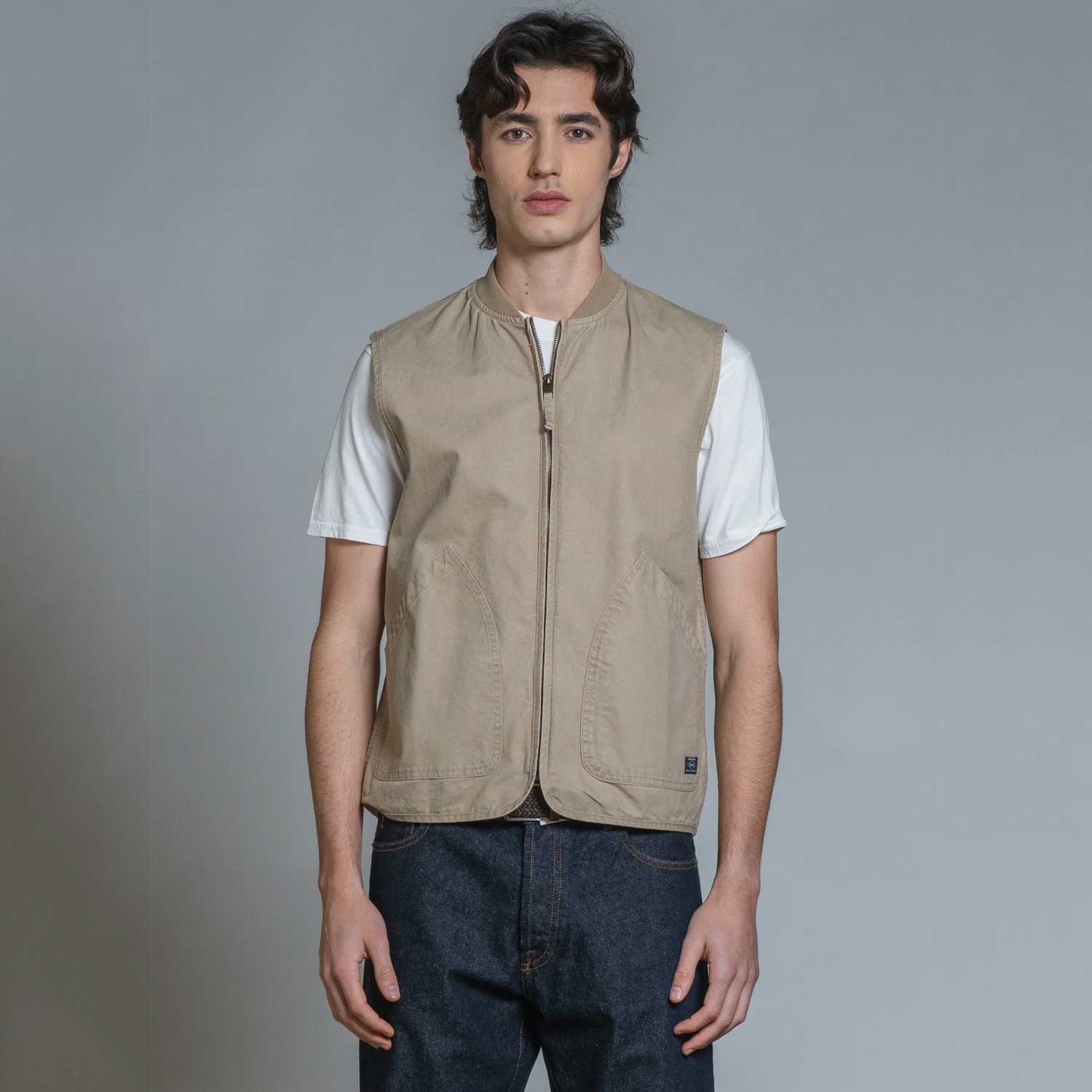 IMPURE - Gilet Zip Cotton Slub - Stone Wash Desert, M