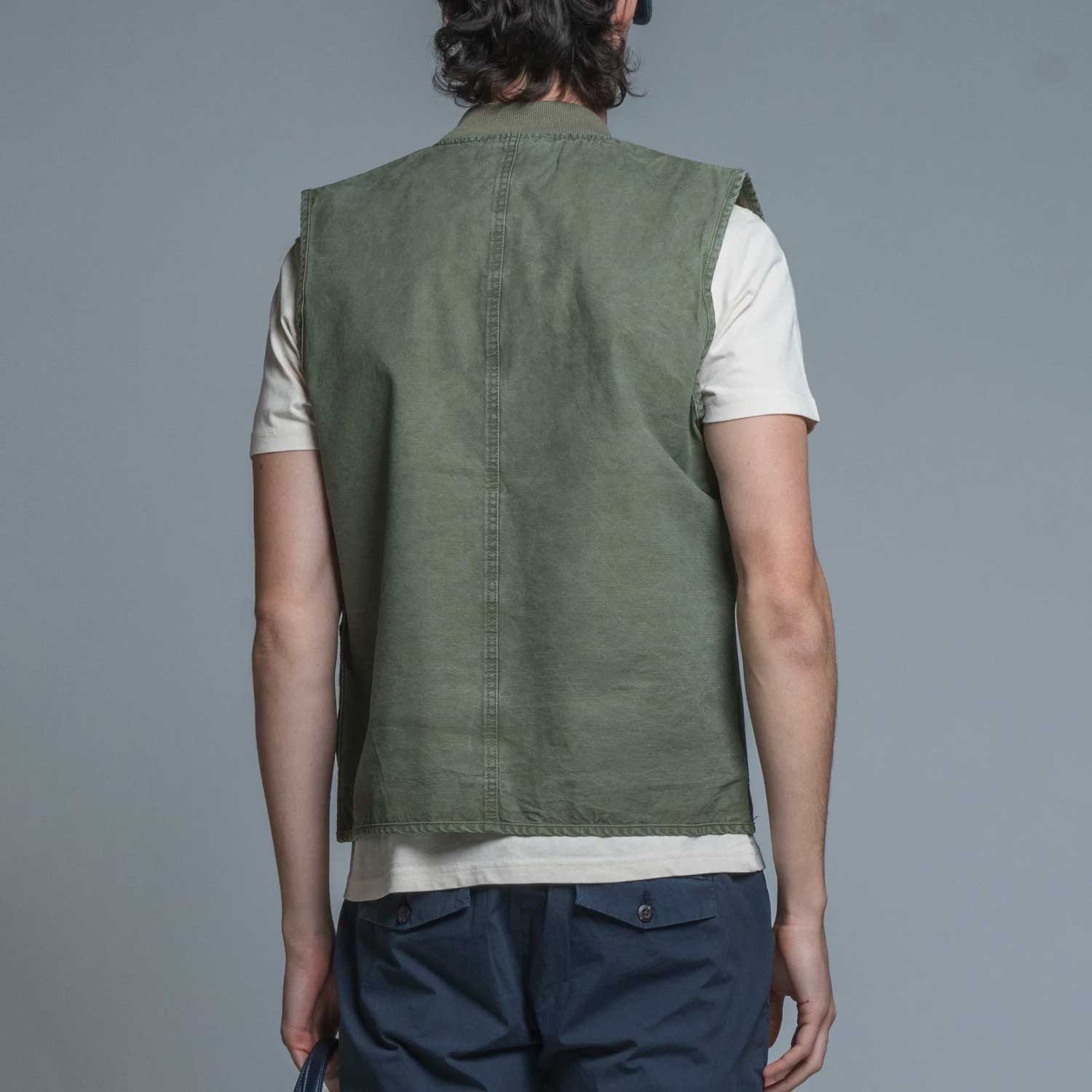 IMPURE - Gilet Zip Cotton Slub - Stone Wash Mil Green, L