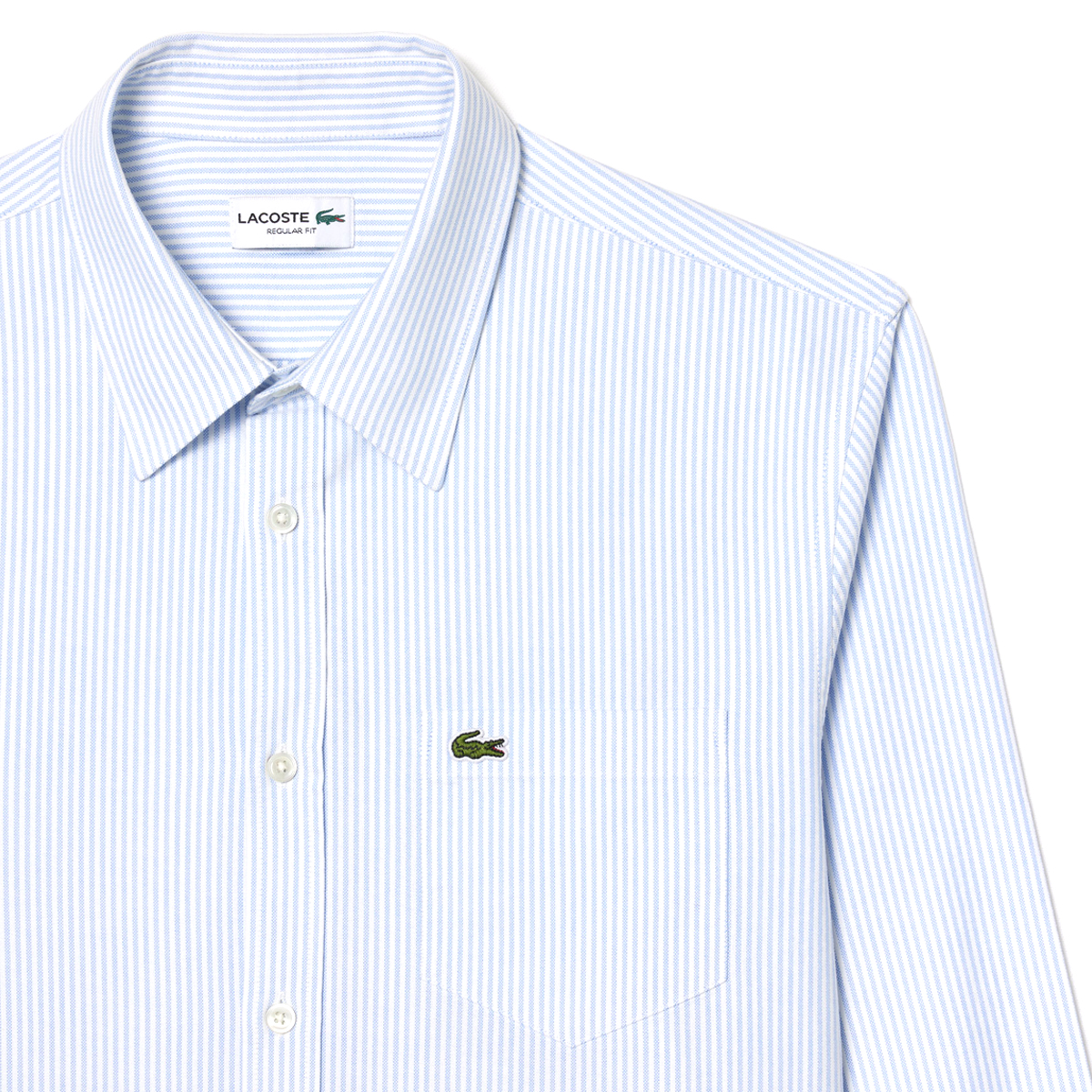 Camicia a manica lunga realizzata in Cotone Oxford che garantisce libertà di movimento. Ricca di dettagli tra cui il motivo a righe, il ricamo sul petto ed i bottoni in madreperla. Il colletto è classico ed il taglio dritto con vestibilità regolare.