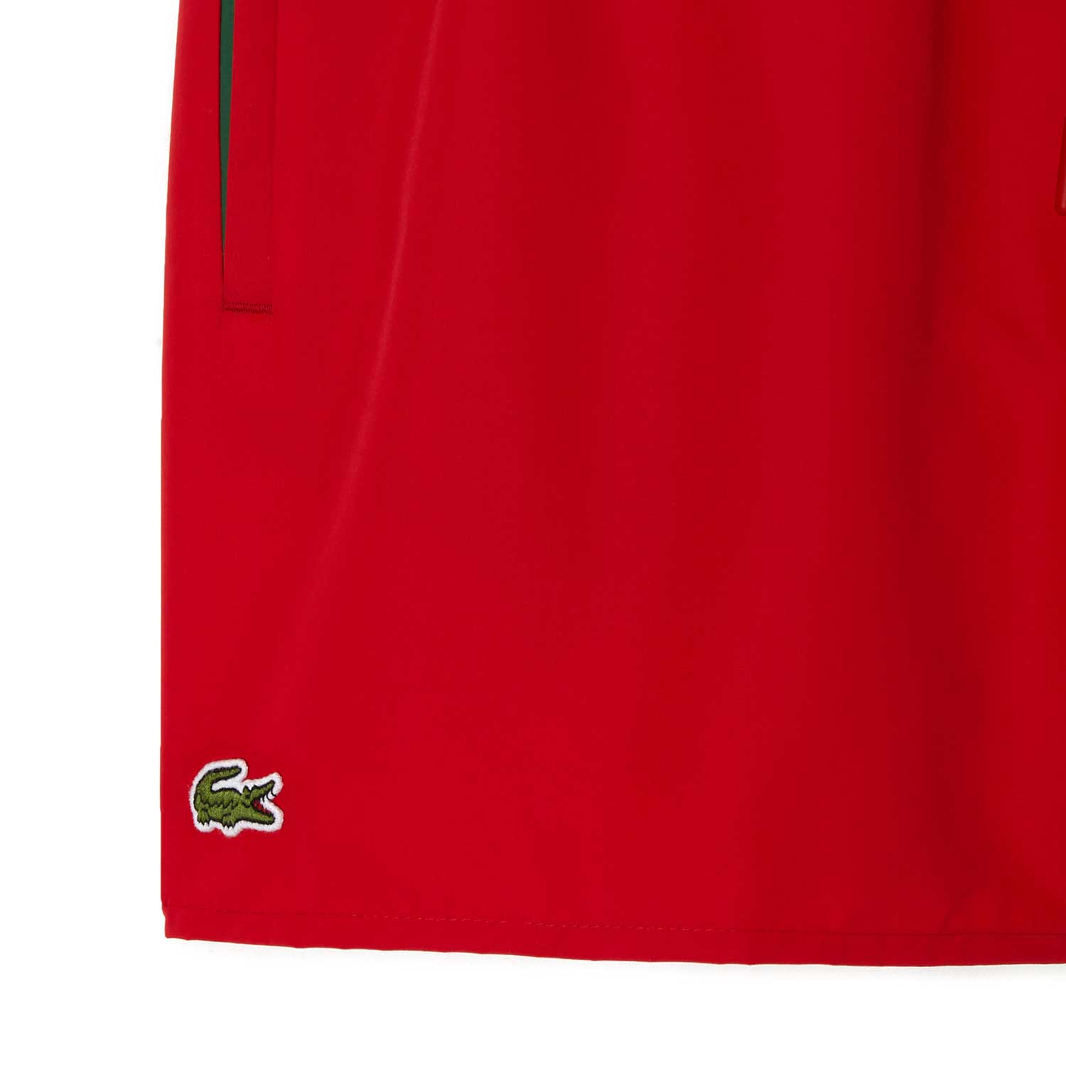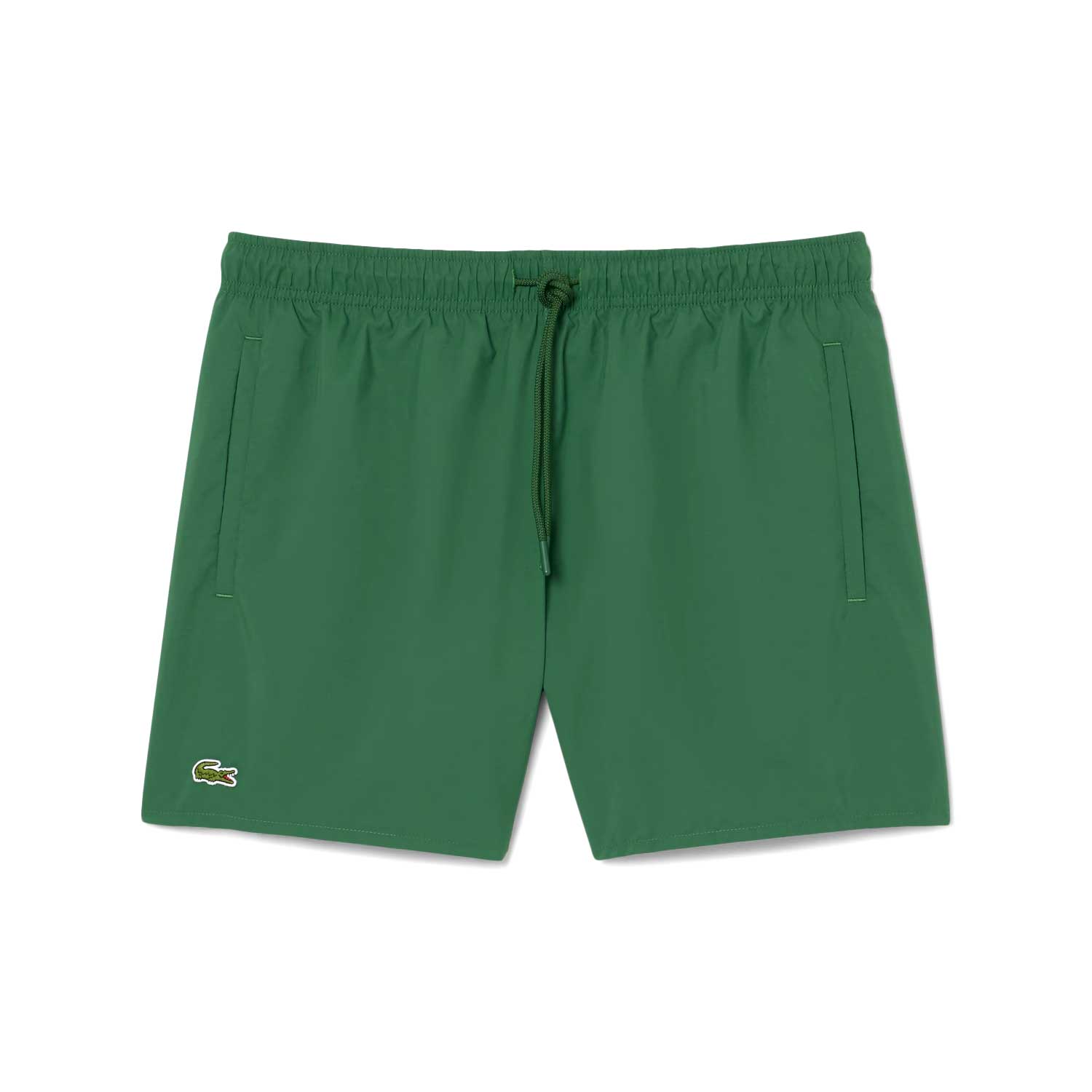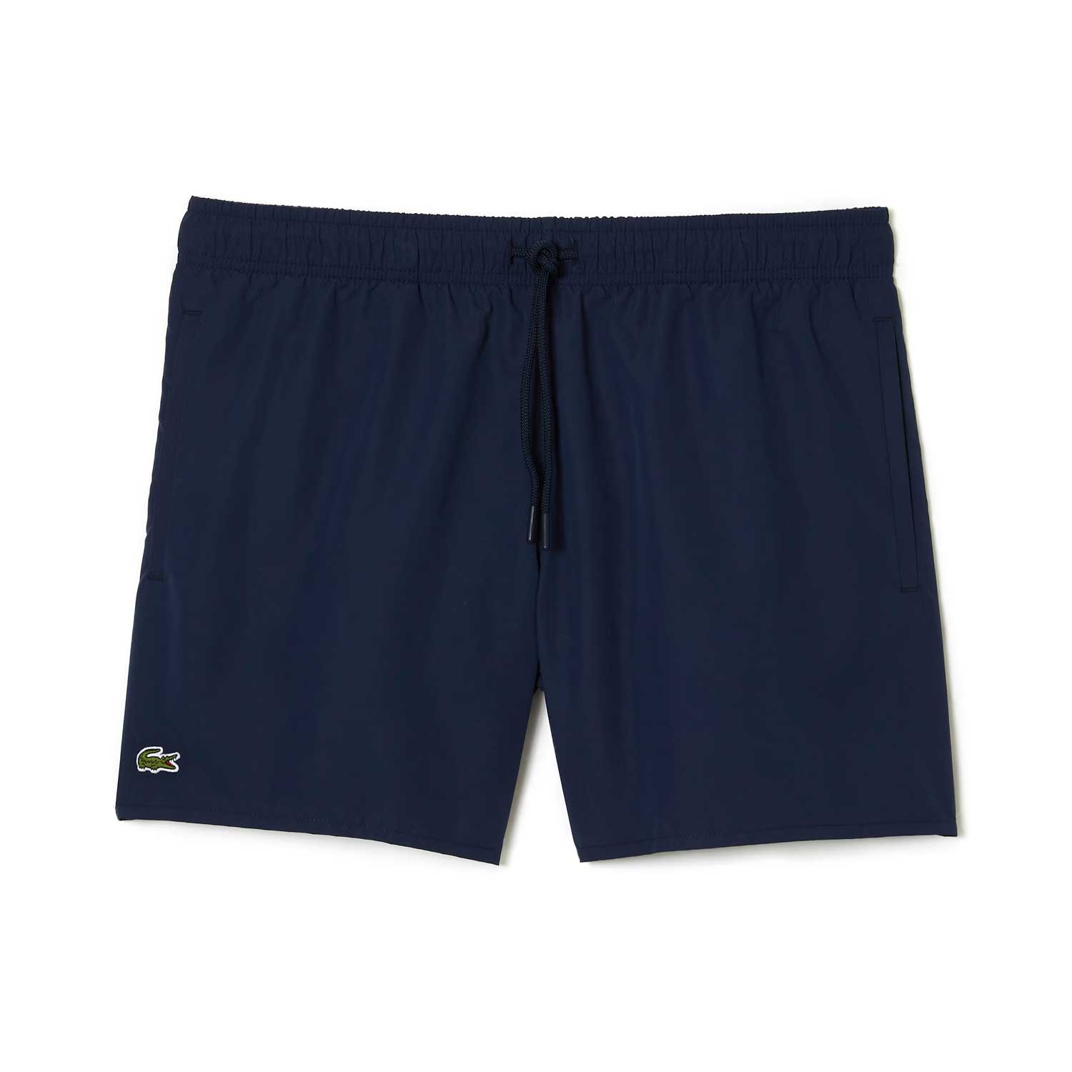 Costume in taffetà di Poliestere riciclato ad asciugatura rapida, dotato di fodera in rete interna e comode tasche laterali. Rifinito con cordoncini regolabili in vita e logo Lacoste ricamato sulla gamba. Vestibilità regolare.