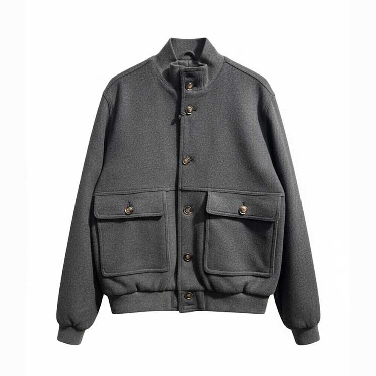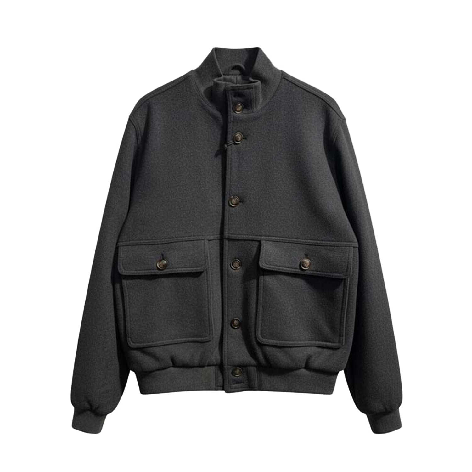 Questo bomber da uomo unisce materiali di qualità e ispirazione heritage, richiamando la storica giacca A1 attraverso l’iconico colletto aviatore. Realizzato in un mix di lana e poliestere, offre comfort, struttura e una vestibilità slim che valorizza la silhouette. I dettagli funzionali, come la doppia tasca frontale con pattina e la tasca laterale a filo, completano un capo dal carattere deciso e contemporaneo, interamente Made in Italy.