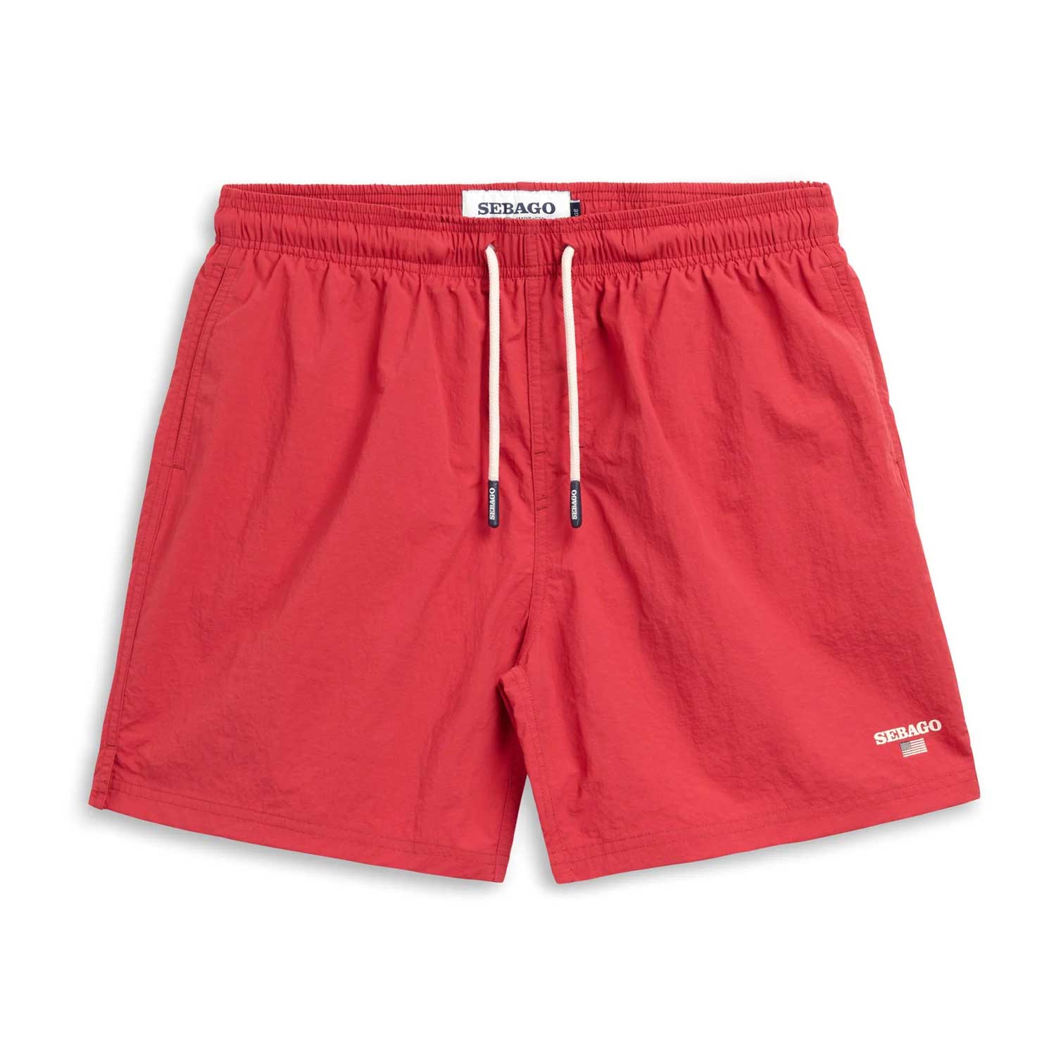 Costume da bagno realizzato in tessuto Supplex di ultima generazione, 100% nylon. La fibra Supplex garantisce asciugatura rapida, mantenendo inalterati colore, forma e dimensione anche dopo il lavaggio. Il materiale assicura morbidezza, resistenza, protezione dal vento, alta traspirabilità, leggerezza e un comfort simile a quello del cotone. Dotato di due tasche laterali, tasca posteriore con patta e bottone a pressione, occhielli sul retro per favorire la traspirazione, cordini regolabili in vita, slip interno a rete, patch in silicone Sebago e stampa con logo sulla gamba.