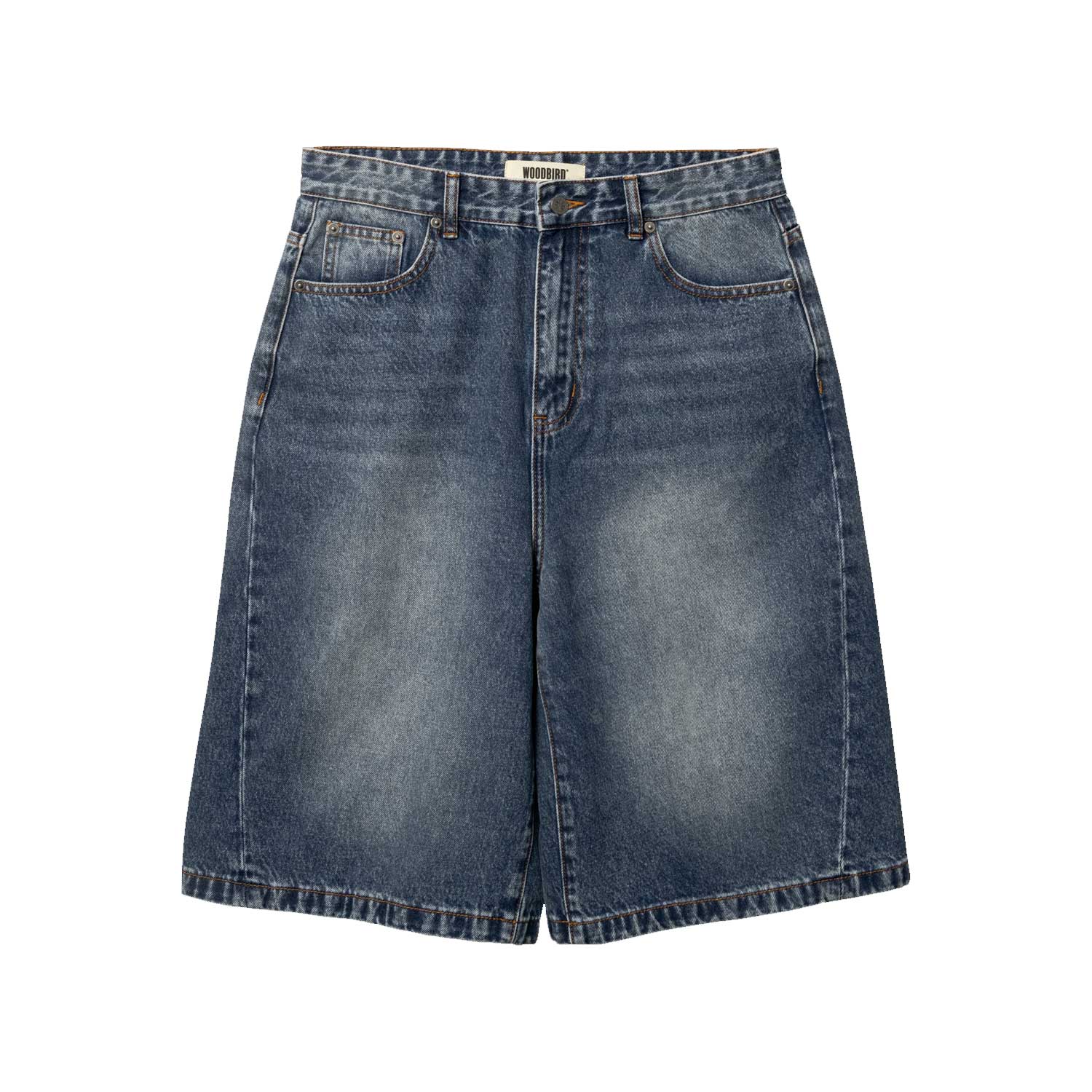 Shorts in denim dal fit baggy, caratterizzati da una silhouette dritta e rilassata e dal classico design a cinque tasche. Le leggere sfumature e gli effetti whiskering donano al capo un look vissuto e autentico, perfetto per uno stile quotidiano essenziale e versatile.